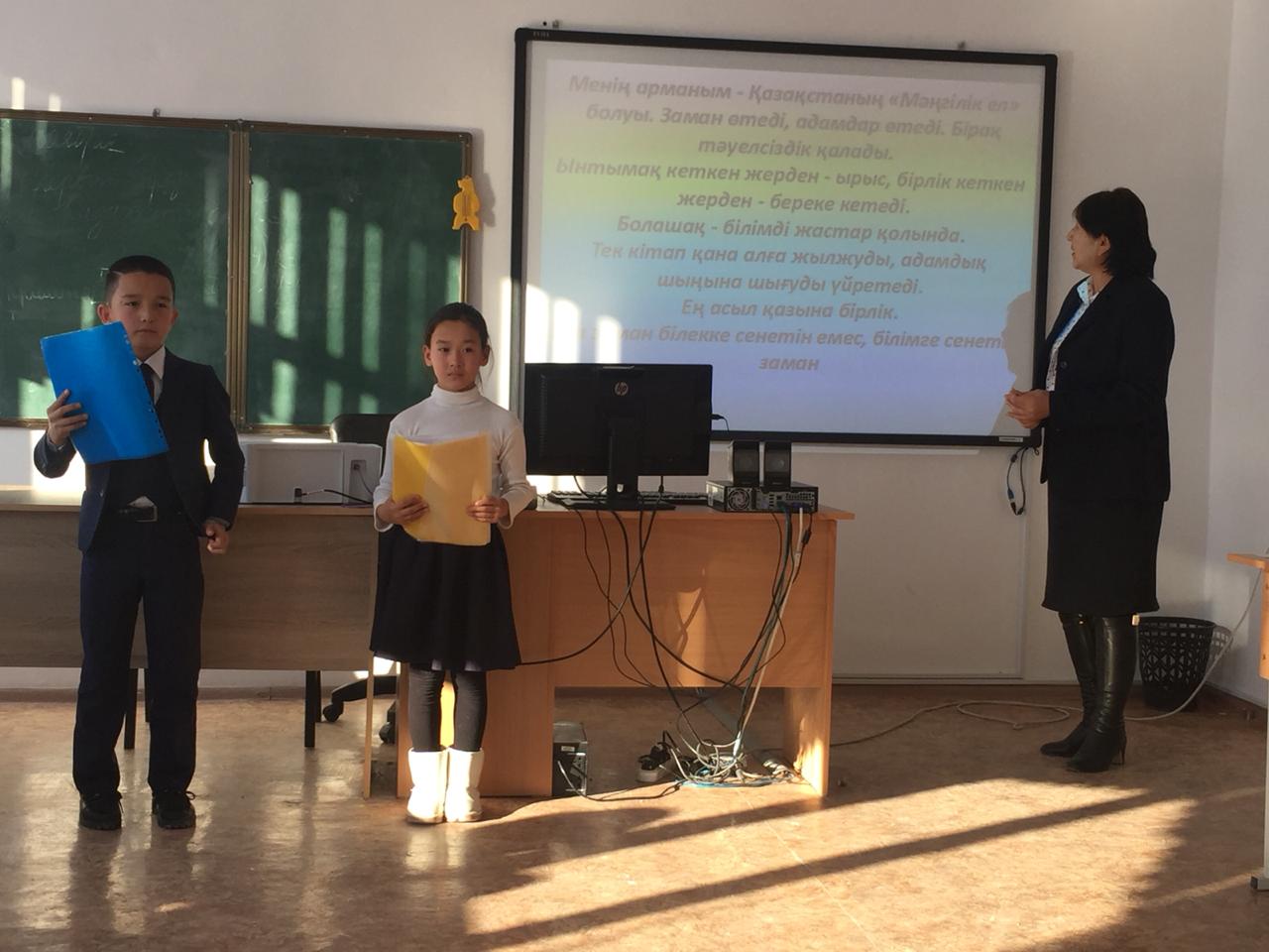 Қазақ тілі пәні мұғалімі А.Нұрмұқашеваның ұйымдастыруымен «Менің Президентім» тақырыбында эсселер байқауы өткізілді. 6-сынып оқушысы Медетқызы Жансаяның «Менің Президентім» атты эссе жұмысы ауданнан жүлделі 3-орын иеленді.