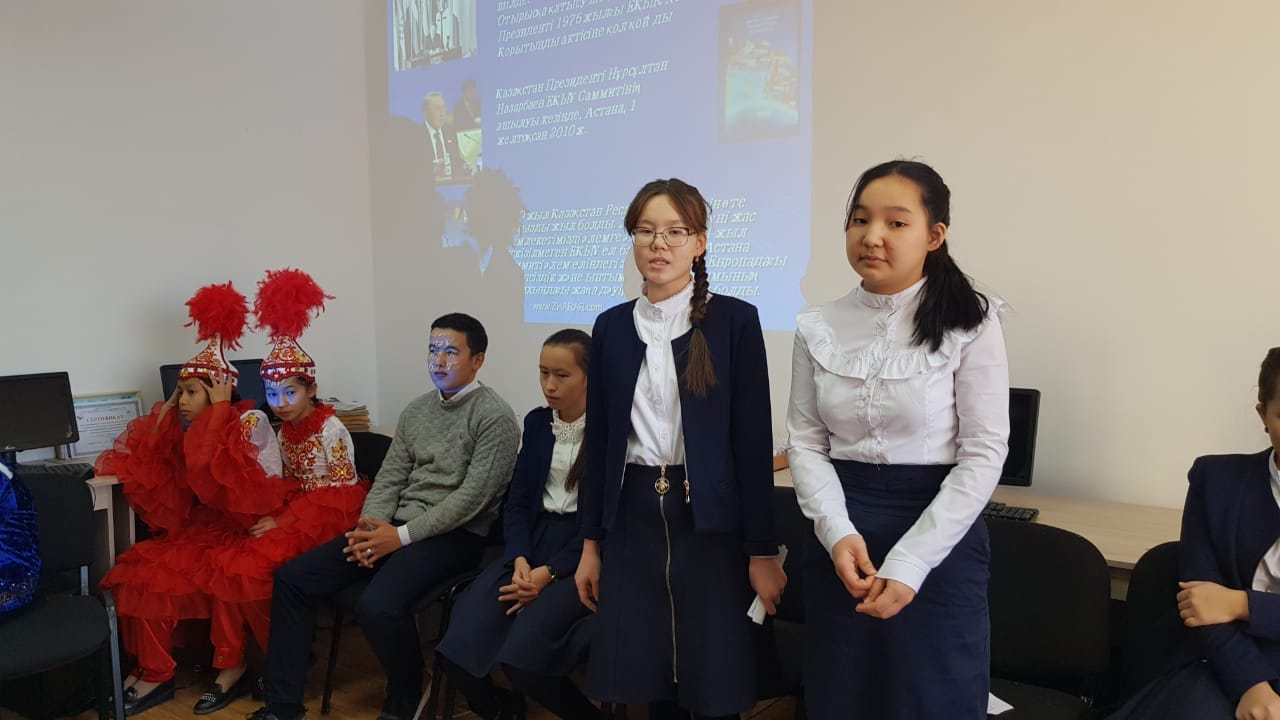 Мектеп кітапханашысы С.Қалиева «Елін сүйген Елбасы» атты кітап көрмесін ұйымдастырды. 29 қараша күні №13 Ақкиізтоғай ауылдық кітапханасында 10-11 сынып оқушыларымен бірлескен «Мемлекеттің қалыптасу тарихы» атты дөңгелек үстел өткізілді.