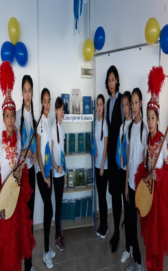 19-29 қараша аралығында барлық 1-11сыныптарда «Менің Тұңғыш Президентім», «Елін сүйген , Елі сүйген - Елбасы» атты сынып сағаттары өткізіліп,Музыка пәні мұғалімі Нұржанова С. Мектептің домбыра,қобыз үйірмесіне қатысатын оқушылардың қатысуымен «Елім деп соққан жүрегі» атты концерттік бағдарламасын өткізді.